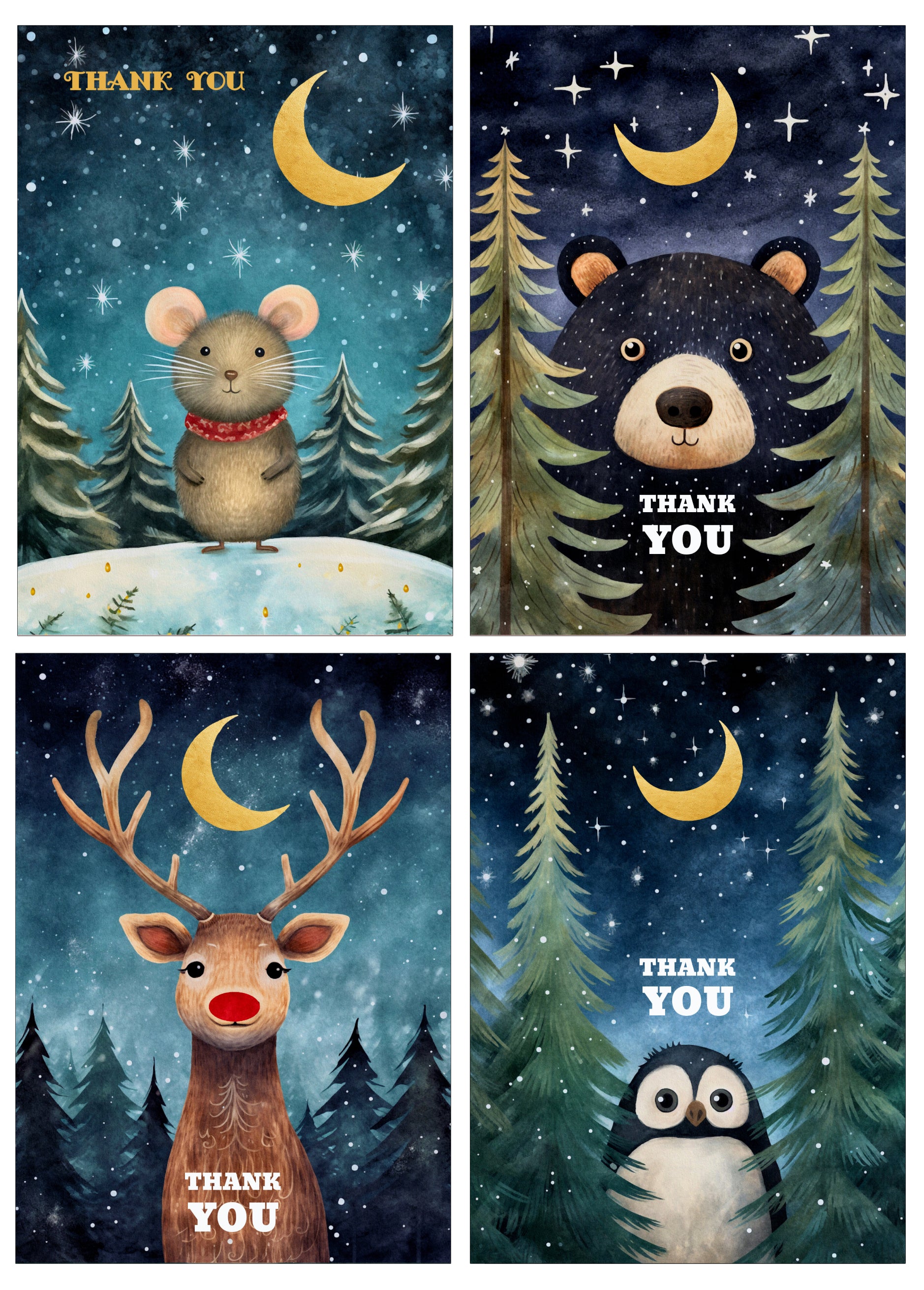 Four Large A5 Xmas Thank You Cards - Pack 413